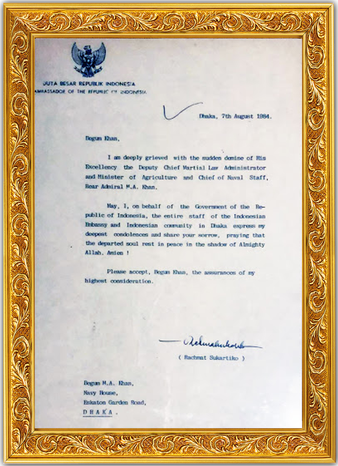 [Condolence message from General M Zia-ul-Haq, the President of Pakistan]